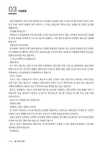 끝으로 성남시 체육인들을 위해 더욱 개선된 환경에서 운동할 수 있는 체육시설 확충과 시설 편의