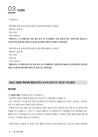 성남시 대장동 특혜의혹 행정사무조사 요구의 건(이기인 의원 등 15인 발의)