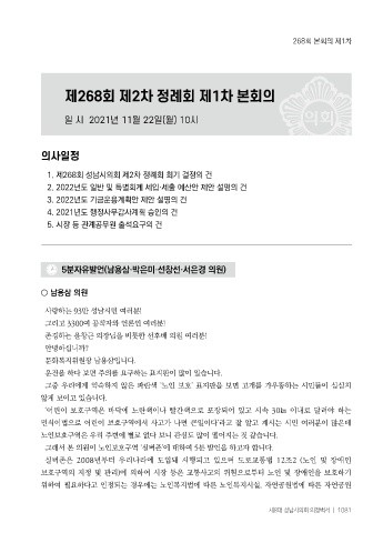 1. 제268회 성남시의회 제2차 정례회 회기 결정의 건