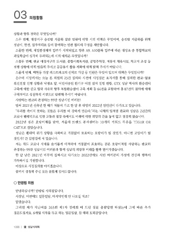 은수미 시장께서는 오늘 본 의원의 23건 질의와 사전에 시정질문 요지서를 통해 질의한 판교-월곶