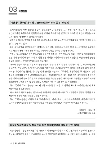 따라서 성남시의회는 개발이익 공공환원에 관한 구체적 규정을 신설하여 국가, 지방자치단체,