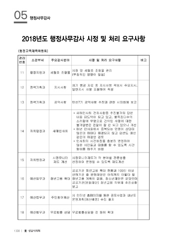 05 행정사무감사 2018년도 행정사무감사 시정 및 처리 요구사항 1308 ㅣ 성남시의회