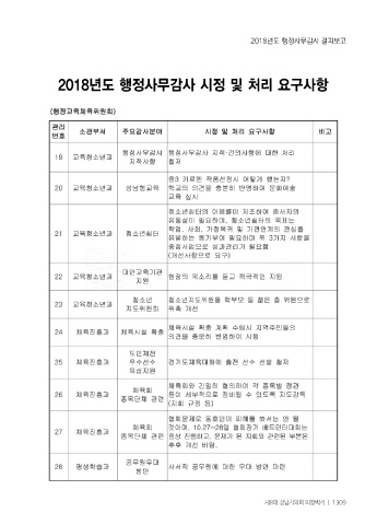 2018년도 행정사무감사 결과보고 2018년도 행정사무감사 시정 및 처리 요구사항 제8대 성남시의회 의정백서 ㅣ 1309