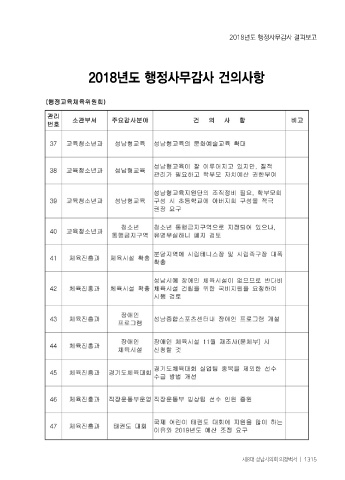 2018년도 행정사무감사 결과보고 2018년도 행정사무감사 건의사항 제8대 성남시의회 의정백서 ㅣ 1315