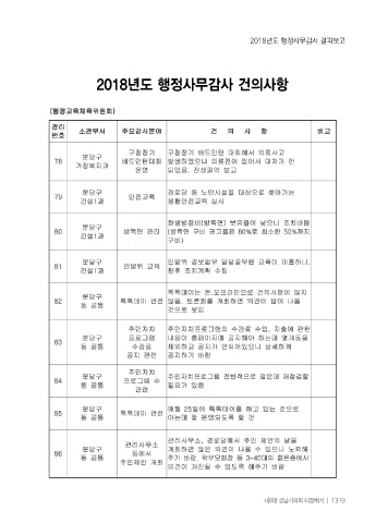 2018년도 행정사무감사 결과보고 2018년도 행정사무감사 건의사항 제8대 성남시의회 의정백서 ㅣ 1319