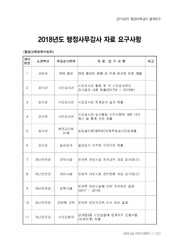 2018년도 행정사무감사 결과보고 2018년도 행정사무감사 자료 요구사항 제8대 성남시의회 의정백서 ㅣ 1323