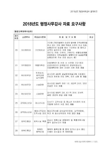 2018년도 행정사무감사 결과보고 2018년도 행정사무감사 자료 요구사항 제8대 성남시의회 의정백서 ㅣ 1325