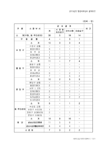 2018년도 행정사무감사 결과보고 제8대 성남시의회 의정백서 ㅣ 1331