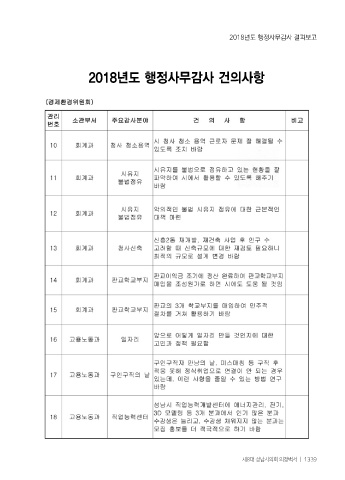 2018년도 행정사무감사 결과보고 2018년도 행정사무감사 건의사항 제8대 성남시의회 의정백서 ㅣ 1339