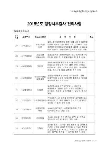 2018년도 행정사무감사 결과보고 2018년도 행정사무감사 건의사항 제8대 성남시의회 의정백서 ㅣ 1341