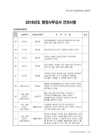 2018년도 행정사무감사 결과보고 2018년도 행정사무감사 건의사항 제8대 성남시의회 의정백서 ㅣ 1345
