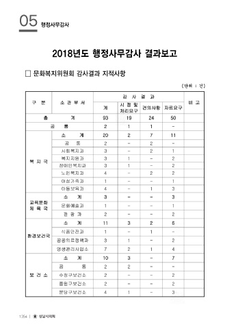 05 행정사무감사 2018년도 행정사무감사 결과보고 문화복지위원회 감사결과 지적사항 1354 ㅣ 성남시의회