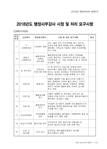 2018년도 행정사무감사 결과보고 2018년도 행정사무감사 시정 및 처리 요구사항 제8대 성남시의회 의정백서 ㅣ 1357