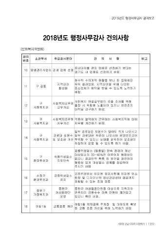 2018년도 행정사무감사 결과보고 2018년도 행정사무감사 건의사항 제8대 성남시의회 의정백서 ㅣ 1359