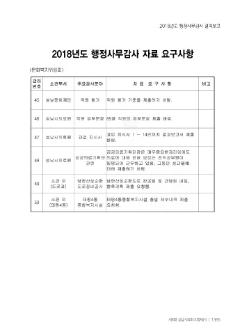 2018년도 행정사무감사 결과보고 2018년도 행정사무감사 자료 요구사항 제8대 성남시의회 의정백서 ㅣ 1365