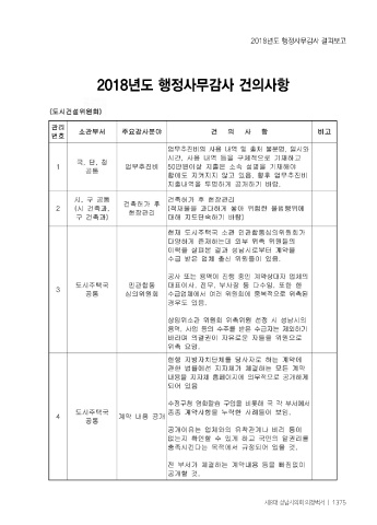 2018년도 행정사무감사 결과보고 2018년도 행정사무감사 건의사항 제8대 성남시의회 의정백서 ㅣ 1375