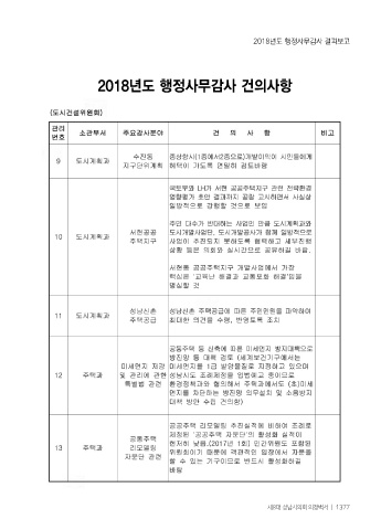 2018년도 행정사무감사 결과보고 2018년도 행정사무감사 건의사항 제8대 성남시의회 의정백서 ㅣ 1377