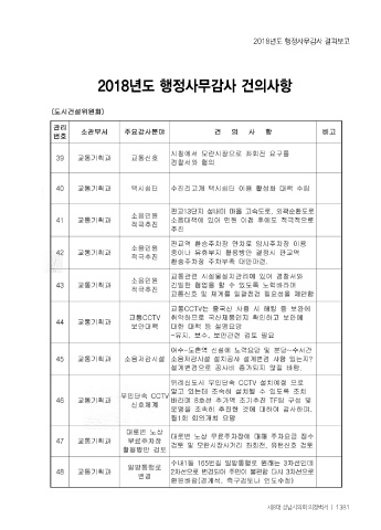 2018년도 행정사무감사 결과보고 2018년도 행정사무감사 건의사항 제8대 성남시의회 의정백서 ㅣ 1381