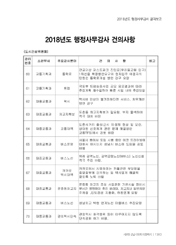 2018년도 행정사무감사 결과보고 2018년도 행정사무감사 건의사항 제8대 성남시의회 의정백서 ㅣ 1383