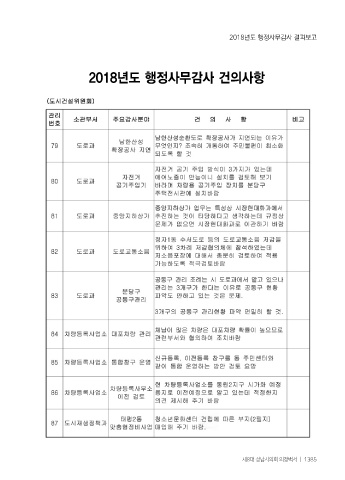 2018년도 행정사무감사 결과보고 2018년도 행정사무감사 건의사항 제8대 성남시의회 의정백서 ㅣ 1385