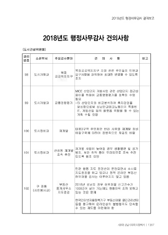 2018년도 행정사무감사 결과보고 2018년도 행정사무감사 건의사항 제8대 성남시의회 의정백서 ㅣ 1387