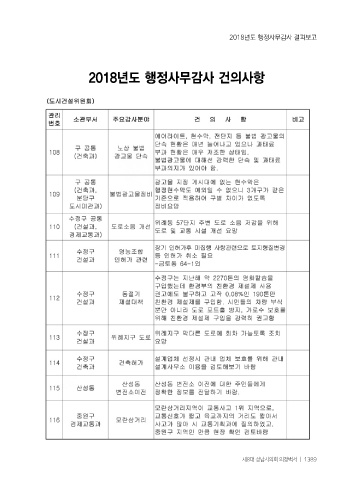 2018년도 행정사무감사 결과보고 2018년도 행정사무감사 건의사항 제8대 성남시의회 의정백서 ㅣ 1389