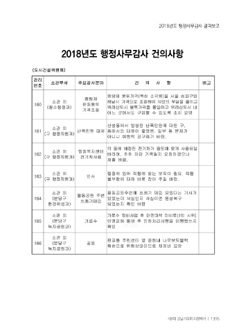 2018년도 행정사무감사 결과보고 2018년도 행정사무감사 건의사항 제8대 성남시의회 의정백서 ㅣ 1395