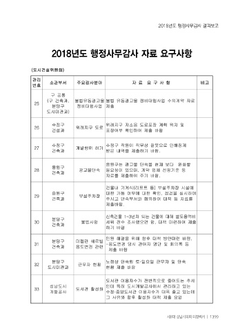 2018년도 행정사무감사 결과보고 2018년도 행정사무감사 자료 요구사항 제8대 성남시의회 의정백서 ㅣ 1399