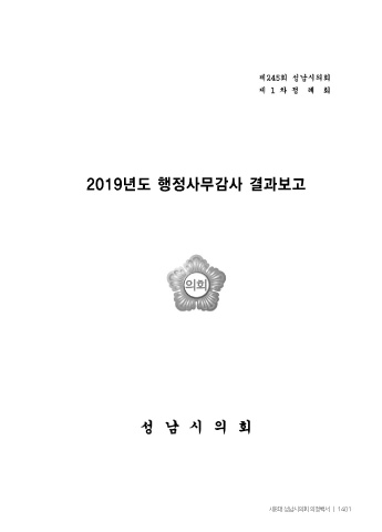 2019년도 행정사무감사 결과보고 제8대 성남시의회 의정백서 ㅣ 1401