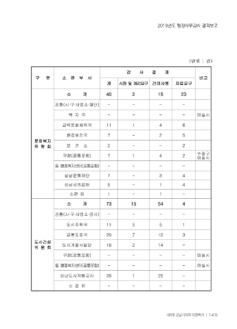 2019년도 행정사무감사 결과보고 제8대 성남시의회 의정백서 ㅣ 1405