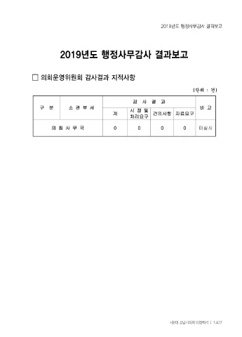 2019년도 행정사무감사 결과보고 2019년도 행정사무감사 결과보고 의회운영위원회 감사결과 지적사항 제8대 성남시의회 의정백서 ㅣ 1407
