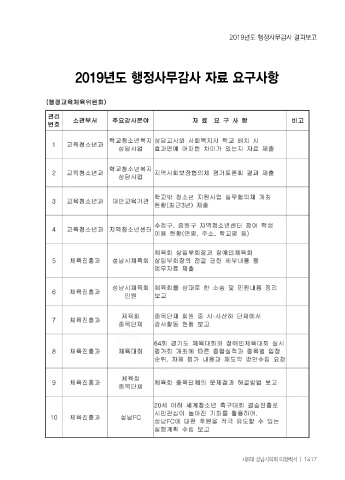 2019년도 행정사무감사 결과보고 2019년도 행정사무감사 자료 요구사항 제8대 성남시의회 의정백서 ㅣ 1417