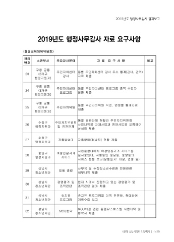 2019년도 행정사무감사 결과보고 2019년도 행정사무감사 자료 요구사항 제8대 성남시의회 의정백서 ㅣ 1419