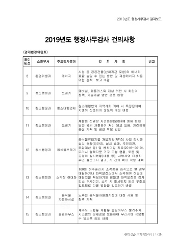 2019년도 행정사무감사 결과보고 2019년도 행정사무감사 건의사항 제8대 성남시의회 의정백서 ㅣ 1425