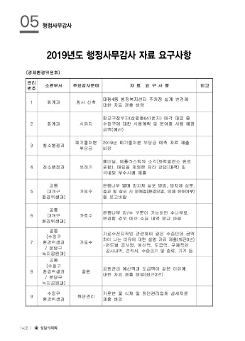 05 행정사무감사 2019년도 행정사무감사 자료 요구사항 1428 ㅣ 성남시의회