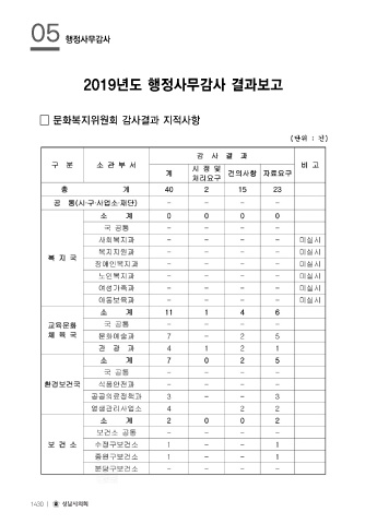 05 행정사무감사 2019년도 행정사무감사 결과보고 문화복지위원회 감사결과 지적사항 1430 ㅣ 성남시의회