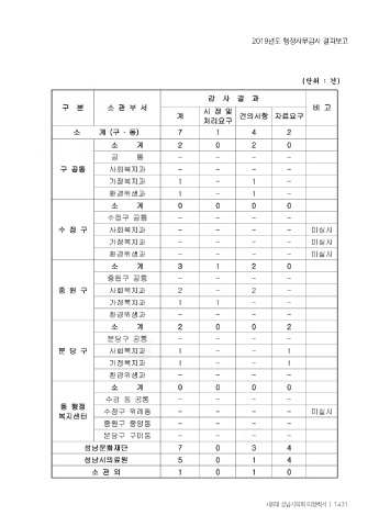 2019년도 행정사무감사 결과보고 제8대 성남시의회 의정백서 ㅣ 1431