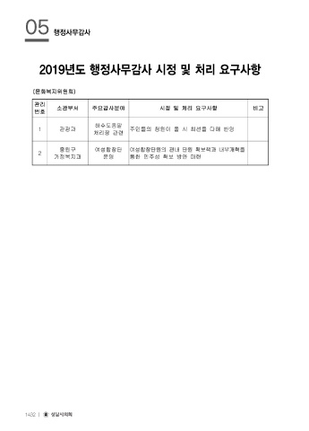 05 행정사무감사 2019년도 행정사무감사 시정 및 처리 요구사항 1432 ㅣ 성남시의회