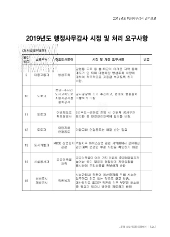 2019년도 행정사무감사 결과보고 2019년도 행정사무감사 시정 및 처리 요구사항 제8대 성남시의회 의정백서 ㅣ 1443