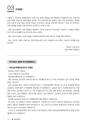 첫 번째, 2018년도 제4회 추가경정예산안에 대한 종합심사 결과입니다.