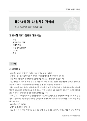 오늘 제254회 제1차 정례회에서 건강한 모습으로 만나 뵙게 되어 반갑습니다.
