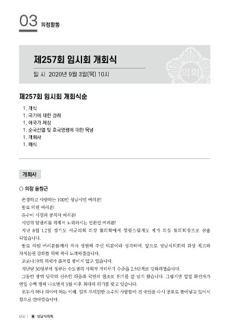 동료 의원 여러분들께서 적극 성원해 주신 덕분이라 생각하며, 앞으로 성남시의회의 위상 제고와