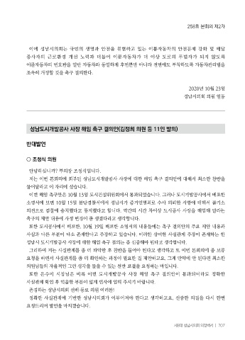 저는 이번 본회의에 회부된 성남도시개발공사 사장에 대한 해임 촉구 결의안에 대해서 최소한 찬반을