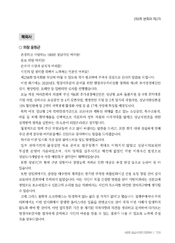 제258회 임시회를 무난히 마칠 수 있도록 적극 협조하여 주셔서 진심으로 감사의 말씀을 드립니다.