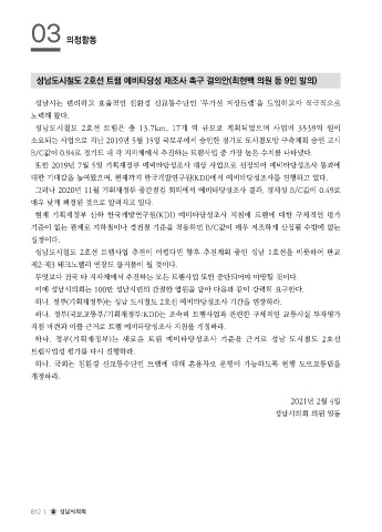 성남도시철도 2호선 트램 예비타당성 재조사 촉구 결의안(최현백 의원 등 9인 발의)