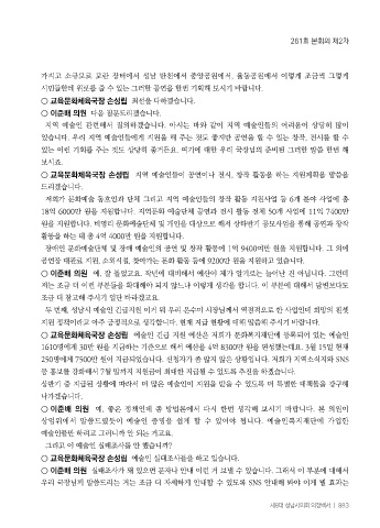 ○ 교육문화체육국장 손성립 지역 예술인들이 공연이나 전시, 창작 활동을 하는 지원계획을 말씀을