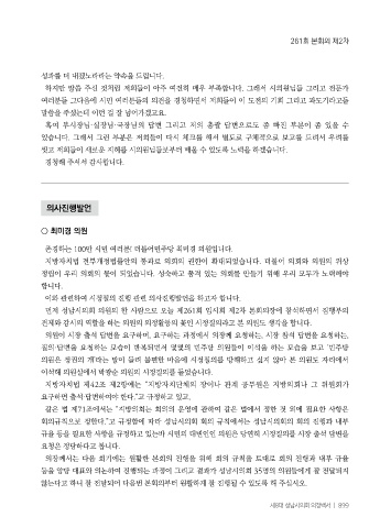 먼저 성남시의회 의원의 한 사람으로 오늘 제261회 임시회 제2차 본회의장에 참석하면서 집행부의