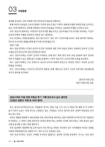 성남시의회 의원 전원 부동산 투기 거래 전수조사 실시 결의안
