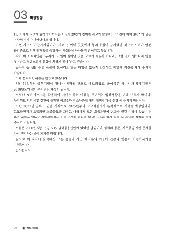 공사장 등 생활 주변 곳곳에 도사리고 있는 위험은 없는지 안전사고 예방에 최선을 다해 주시기