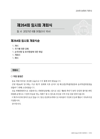 금번 제264회 임시회는 지난 제1차 정례회 직후 공석이 된 예산결산특별위원장과 윤리특별위원장을